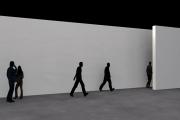 The two versions – a day version and a night version – are projected at the same time, on the two sides of the screen built specifically for the exhibition space.