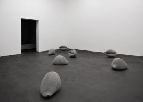 Shell (2014) - The cowry is a shell used as the first form of exchange in ancient China. Through trade relations, it became the currency for ancient African civilizations. Cowries are also used in fortune-telling rituals in Africa. The shells, laden with their economic and fortune-telling value are reproduced in concrete and arranged according to where the exhibition curators “throw” them, like many ways of interpreting the world.