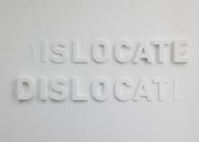 Dans Deviation (2011-2014) l’artiste joue, comme avec Word(s), avec des mots devenus cette fois sculptures à part entière. Ils prennent forme autant qu’ils disparaissent par enfoncement dans le mur. Si la lecture est fuyante, elle est tout de même rendue possible par la superposition inversée des lettres. Il ne s’agit pas tant de mots hybrides que d’un déchiffrement, d’un nouvel agencement définitoire qui laisse libre court à une interprétation nouvelle du préfixe anglais de négation « DIS ».