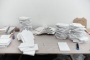 Le manuscrit (fac-similé) du Journal de Vahram Altounian est extrait du livre et reprographié avant d'être encadré.