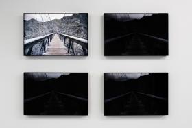 The installation Return From Memory consists of four large light boxes. The four photographs displayed in the light boxes track the image of a man moving across a wooden suspension bridge in Mexico. El Puente d'Ojuela, Mapimi, Durango. Animated light times the character’s progression through the distance of the landscape (at 8-second intervals per image). The temporality created by the repetitive presence and successive absence of images, invites visitors to question their own presence through the experience of time effects in our perception of images.