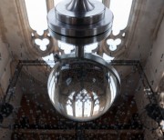 Objet d’attraction et de fascination, l’œuvre incite au jeu, au déplacement. Elle se pratique, et fait du visiteur un expérimentateur qui gravite autour. La sphère, en absorbant puis renvoyant une image inversée de nous-mêmes et du lieu, met en corrélation différents points de l’espace. Elle fait de son contexte un monde, qui évolue sans cesse au gré des points de vue. À la manière d’une loupe, elle offre de la réalité une vision hypertrophiée et fragmentaire, où la partie devient le tout. Cette sphère, finalement, produit des univers. Elle fonctionne comme un globe oculaire - qui s’empare d’un champ du réel, en inverse l’image, puis le livre à l’interprétation, ou à l’imaginaire. Articulant une lentille, un miroir, et la lumière, cet objet est aussi de nature photographique. Il est dans tous les cas un capteur, un espace de projection et d’invention où se faire son cinéma.