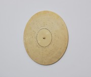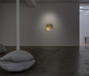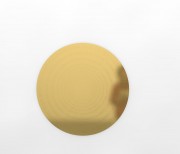 An engraved brass circle Yellow Memory — Learn, 2014 plays with the possible semantic combinations between the verbs to say, to see and to think. This ritornello in three-quarter time repeats the affirmative and negative phrases from the speech in a play on tension between existential and material dimensions.
