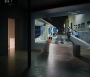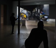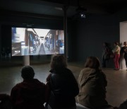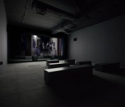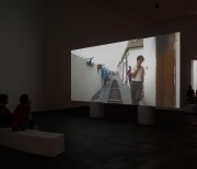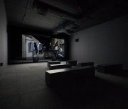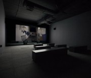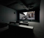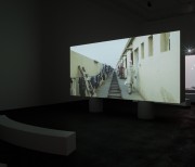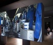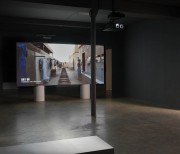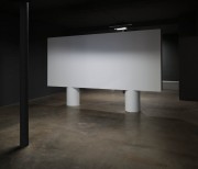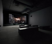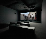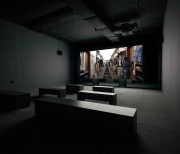 The two versions – a day version and a night version – are projected at the same time, on the two sides of the screen built specifically for the exhibition space.