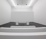 Les deux versions - version jours et version nuits - sont projetées simultananément et de manière synchronisée sur les deux faces d’un même écran construit spécialement pour l’espace d’exposition. L’oeuvre est programmée sur des cycles d’une heure : les films sont projetés simultanément au début de chaque heure de la journée, pour une durée de 42 minutes. A la fin de la projection, la lumière est rallumée pendant les 18 dernières minutes du cycle. L’écran devient alors une sculpture minimale au centre de l’espace de projection.