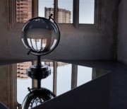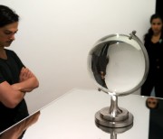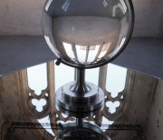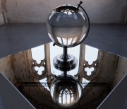 Objet d’attraction et de fascination, l’œuvre incite au jeu, au déplacement. Elle se pratique, et fait du visiteur un expérimentateur qui gravite autour. La sphère, en absorbant puis renvoyant une image inversée de nous-mêmes et du lieu, met en corrélation différents points de l’espace. Elle fait de son contexte un monde, qui évolue sans cesse au gré des points de vue. À la manière d’une loupe, elle offre de la réalité une vision hypertrophiée et fragmentaire, où la partie devient le tout. Cette sphère, finalement, produit des univers. Elle fonctionne comme un globe oculaire - qui s’empare d’un champ du réel, en inverse l’image, puis le livre à l’interprétation, ou à l’imaginaire. Articulant une lentille, un miroir, et la lumière, cet objet est aussi de nature photographique. Il est dans tous les cas un capteur, un espace de projection et d’invention où se faire son cinéma.