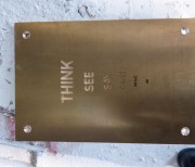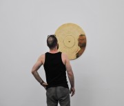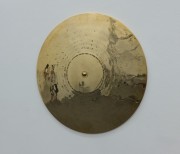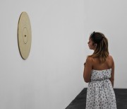 An engraved brass circle Yellow Memory — Learn, 2014 plays with the possible semantic combinations between the verbs to say, to see and to think. This ritornello in three-quarter time repeats the affirmative and negative phrases from the speech in a play on tension between existential and material dimensions.