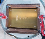 Un cercle de laiton gravé Yellow Memory — Learn (2014) joue avec les combinaisons sémantiques possibles entre les verbes dire, voir et penser. Cette ritournelle à trois temps décline, sous forme circulaire, les phrases affirmatives et négatives du discours, dans un jeu de tension entre dimension existentielle et dimension matérielle.