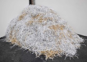 Pulp Off is a three-stage installation, based on the book Mémoires de génocide arménien by the essayist and translator Janine Altounian. Destined to be shredded, the artist offered to purchase the unsold copies and give them a second life by distorting and deforming the initial object to enhance the value of its content, between a testimony of history and a constituent element of the identity of a population and more individually that of the artst of Armenian descent.