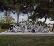87 elements cast aluminium bronze, wood and concrete platform.