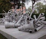 Streetlights of Memory — A Stand by Memorial, 2010/2015 conceived in 2010 for the public space in the City of Geneva is here displayed in its state of progress. In the frame of the 56th Venice Biennial at the National Pavillon of The Republic of Armenia (Golden Lion for the Best National Pavilion), the installation will show the 87 elements constituting the final work —Les Réverbères de la Mémoire — but dismantled. The work itself is a homage to the victims of the 1915 Armenian genocide. A publication will accompany the installation in its new form and will try to reveal and describe the issues raised by the project, from its very beginning until the complex situation it faces for its installation in Geneva.