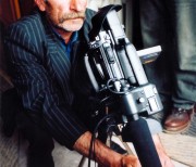 Après, il raconte. Qu’il a voulu filmer les mains d’ouvriers en grève, ceux d’une usine, en France ; et puis c’était trop compliqué, cela n’a pu se faire. Il restait peu de temps, c’était juste avant le voyage en Arménie, avant l’exposition d’été. Il est parti. Et c’est là-bas que les choses ont eu lieu. Là-bas il y avait cet endroit, le sous-sol d’un cinéma, une sorte de bourse du travail, même pas clandestine, là-bas c’est comme ça, d’un autre âge, ces hommes qui attendent là qu’on les choisisse, des heures, des jours, qu’on leur donne une tâche. Pour un dollar ils vous suivent. C’était bizarre, dit-il, on s’est retrouvé dans l’appartement d’un ami ; ils étaient neuf hommes, auxquels il a demandé s’ils pouvaient taper dans leurs mains, une seule fois, s’il pouvait les filmer à cet instant-là. Ils ont dû dire oui. Ensuite il est rentré, a monté les images, samplé les sons, constitué cette bande sonore avec un ami musicien, ces trois boucles, comme on voit en boucle à l’écran les quelques secondes filmées de ces mains qui reposent et s’étreignent, qui battent – des mains qui ont tant travaillé, qui tirent de là leur identité, mais cette fois font autre chose.