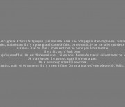 Elles font voir et entendre autre chose. Et les voilà qui peuvent exister ailleurs, bien loin de cet endroit où ils étaient sans emploi, les voilà qui peuvent être regardés, grâce à leurs mains. Sans doute elles sont comme d’autres mains d’hommes qui travaillent, partout. On ne peut les toucher, on devine, on peut imaginer à les scruter à quel travail elles se livraient, rudes mais douces, fortes et assurées, capables – la main, meilleur outil. Ici elles ont ce claquement sec qui se mue en ligne sonore, dynamique accompagnement digne, à suivre. Elles répondent à la proposition qui leur a été faite d’un geste inédit, qu’ils n’auront jamais eu dans leur travail, qui ouvre un horizon. Frapper dans ses mains, n’est-ce pas agir et marquer la fin d’un état d’abandon, ne plus attendre, c’en est assez. Le son développé, c’est autre chose encore, presque l’esquisse d’une danse, fête, l'économie d’une célébration d’hommes qui, s’ils se taisent, bougent, sont là.