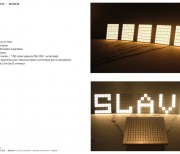 Cinq panneaux lumineux, dotés chacun de 30 ampoules, se dressent devant un tableau de 150 interrupteurs numérotés. Chaque interrupteur permet d’allumer ou éteindre une ampoule, de manière à composer des signes ou des mots sur les panneaux alignés. Les visiteurs, invités à y inscrire une proposition, doivent ensuite transcrire dans un cahier les numéros des leviers activés - de manière à enregistrer leur image et permettre sa recomposition. Le premier et le dernier mot de chaque exposition, SLAVE et VALSE, sont écrits par l’artiste - formant une anagramme qui, de la contrainte à la créativité, délimite le processus dans le temps.