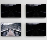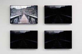 The installation Return From Memory consists of four large light boxes. The four photographs displayed in the light boxes track the image of a man moving across a wooden suspension bridge in Mexico. El Puente d'Ojuela, Mapimi, Durango. Animated light times the character’s progression through the distance of the landscape (at 8-second intervals per image). The temporality created by the repetitive presence and successive absence of images, invites visitors to question their own presence through the experience of time effects in our perception of images.